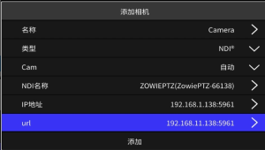 输入NDI源的IP地址和URL。默认NDI端口号为5961。