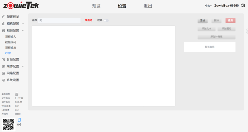 1、登录ZowieBox的网页控制界面,依次点击设置->视频配置–>OSD 以到达OSD配置界面。