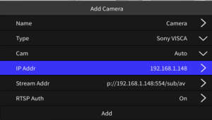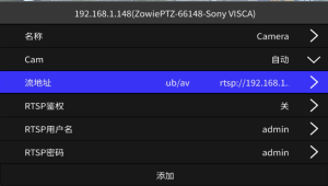 将类型更改为 Sony VISCA,输入要控制的摄像机的 IP 地址和 RTSP URL,并选择正确的 RTSP鉴权。