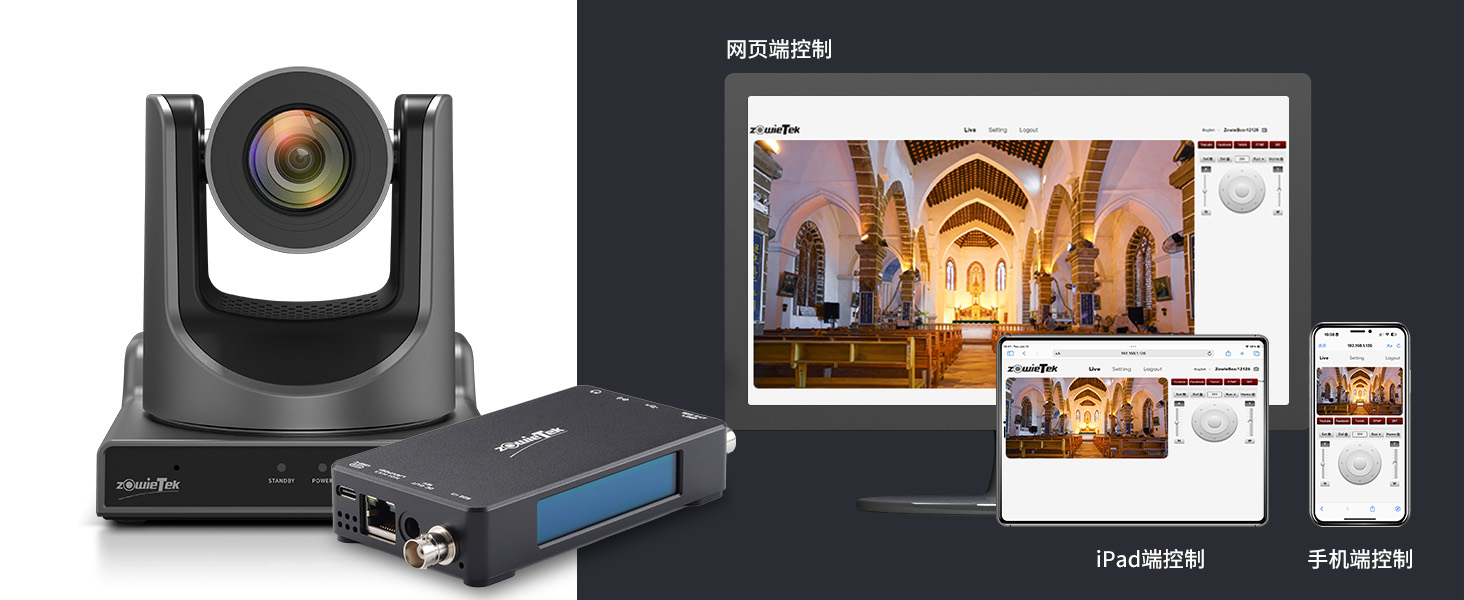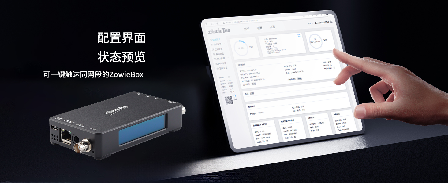 基于浏览器的 GUI,您可以通过电脑、手机、iPad、WiFi 或热点进行控制。只要用户的手机、电脑和 ZowieBox 在同一网络中,他们无需 IP 地址即可登录控制界面。此外,用户可以在配置界面中找到同一网段内的 ZowieBox,并一键控制。