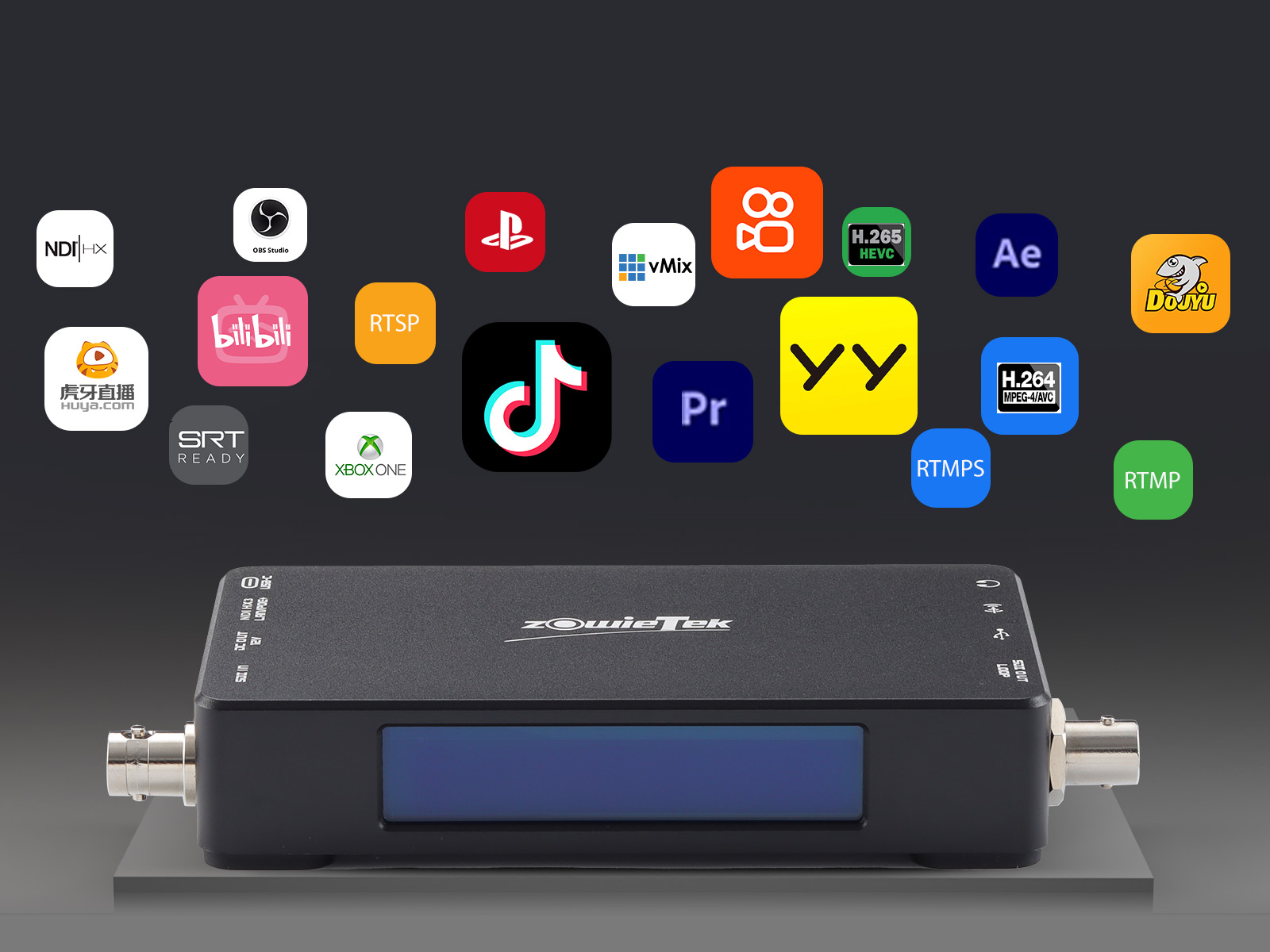 ZowieBox 可以编码 H.264 HP/MP/BP、H.265/HEVC MP、NDI、NDI|HX2 和 NDI|HX3 等格式以及 SRT、RTMP、RTMPS 或 RTSP 协议,码率可达 50 Mbit/秒。同时,它可以直接将流推送到 Facebook、Twitch 和 YouTube 等多个平台,无需 PC。此外,这些 IP 流也可以解码为高质量的 SDI 输出。
